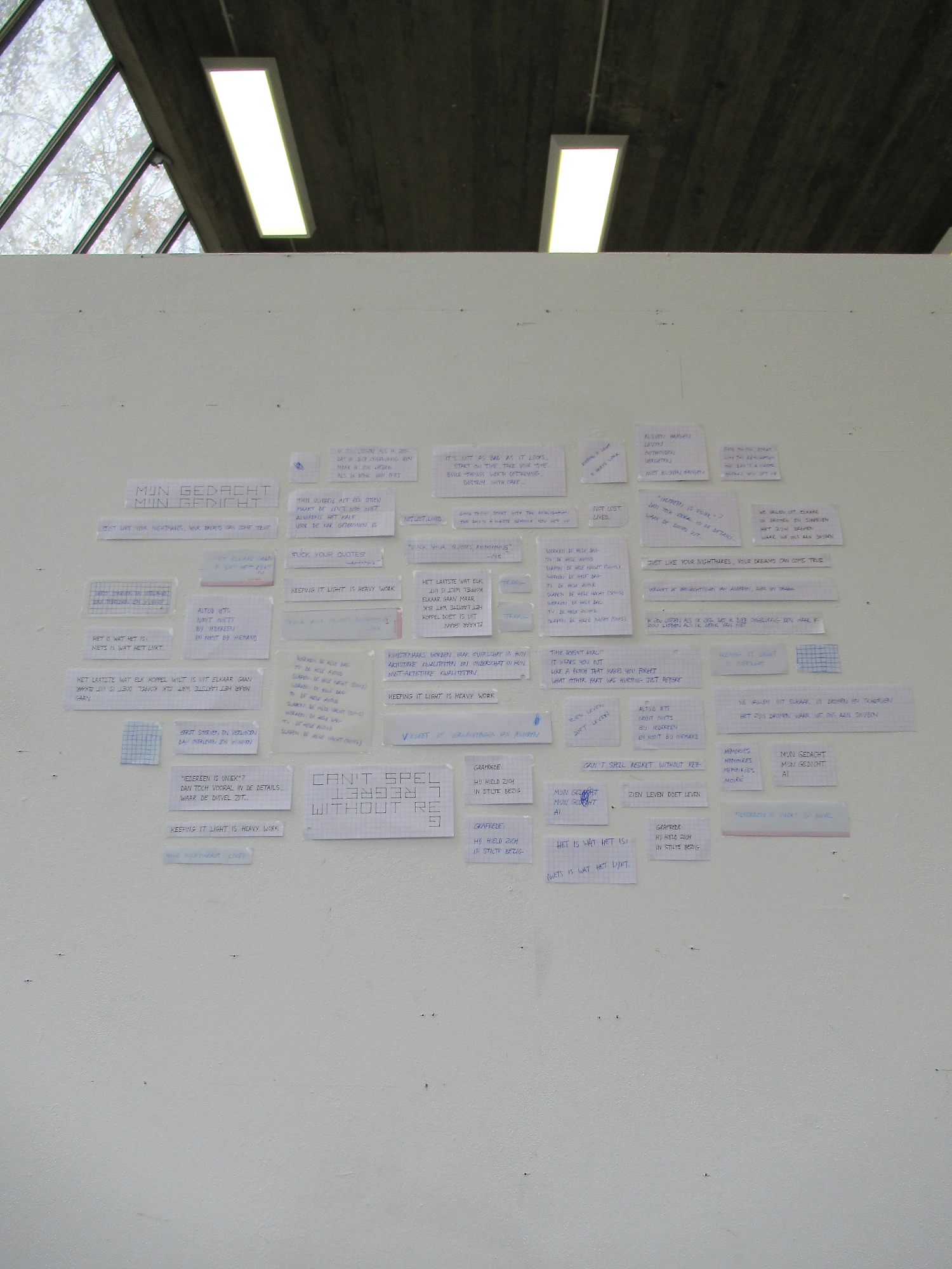At this juncture, the true meaning of the work became clear, and the title aids in clarifying this. Zondag 25 oktober 2025, 15.12 uur is a specific moment that unites all the notes. At the same time, it implies the simultaneity of all these notes, amplifying the contrast between the constant activity of a single mind and what, for many, is the calmest moment of the week.