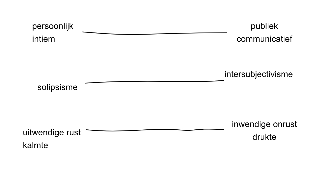 Geleidelijk aan vond het werk zijn plaats op de as van persoonlijk en intiem versus openbaar en communicatief, en op de as van intersubjectivisme versus solipsisme.